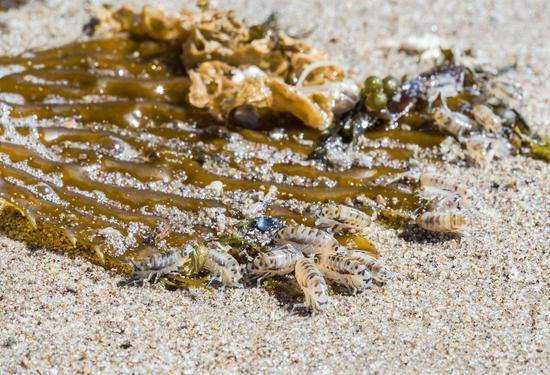 在距離海水稍遠(yuǎn)的海灘生活著沙蚤,它們的食物是沖積到海岸上的海藻團(tuán),美國加州大學(xué)圣巴巴拉分校海岸海洋生態(tài)學(xué)家珍妮·杜根(Jenny Dugan)說:“不要將它們認(rèn)為是‘海灘上的跳蚤’,因?yàn)樗鼈儾粫裉橐粯訉δ愕膶櫸镂!?a href="http://www.bosenshipin.com/pwb/">排污泵