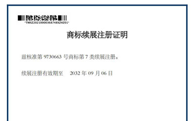 中成泵業(yè)cnsp商標(biāo)續(xù)展注冊證明