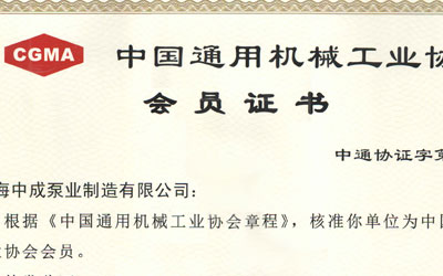 中國通用機械工業(yè)協(xié)會會員證書